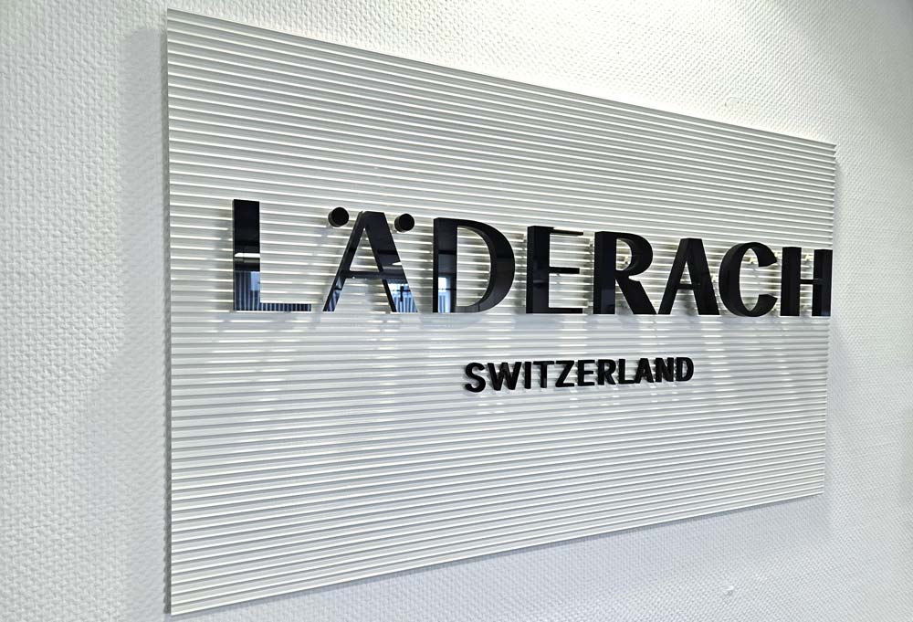 10mm starkes Acrylglas mit polierten Kanten wurde rückseitig mit Kundendaten bedruckt und mit Edelstahl-Halter befestigt.
