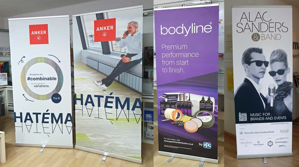 Mit dem Roll-Up Banner oder Klemmleistensystem besitzen Sie ein leicht auf- und abzubauendes Präsentationsmittel, das auch noch auf engstem Raum eine optimale Werbewirkung zeigt.