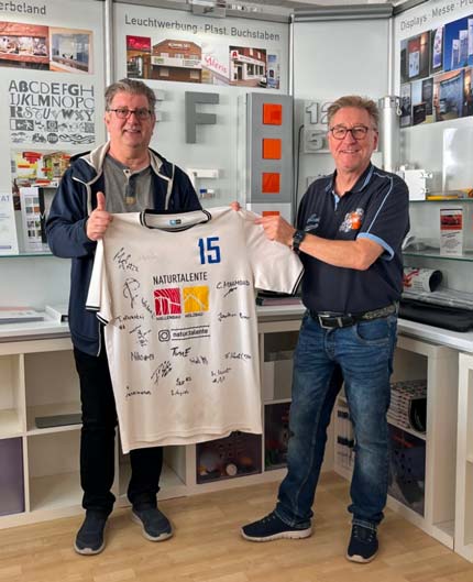 Mit einem besonderen Geschenk bedankte sich die Mannschaft der 1. Herren der 'NEW Elephants' bei uns als einen langjährigen Freund und Förderer. Vorstandsmitglied Theo Penz übergab uns ein handsigniertes Warm-Up-Shirt. Vielen Dank