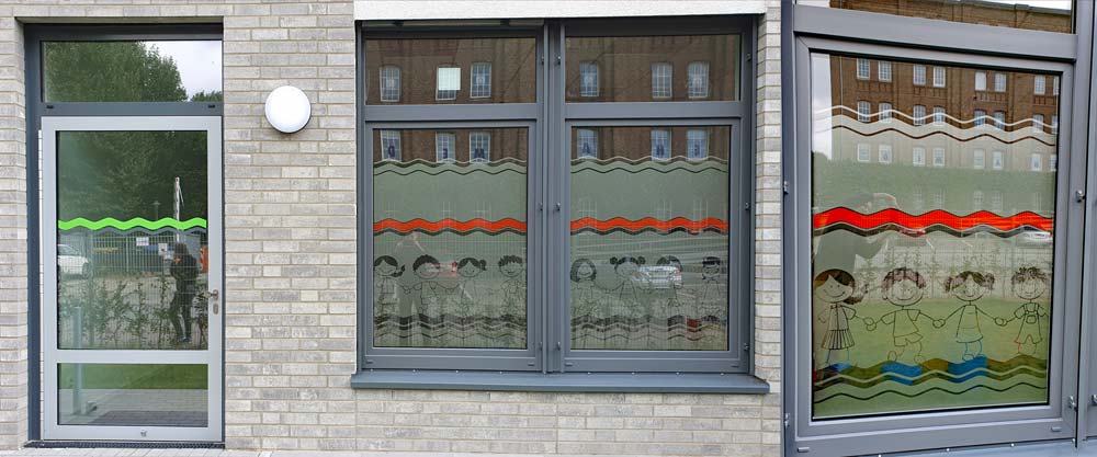 Glastür-Sicherheitsstreifen mit Sichtschutz für Kindergarten