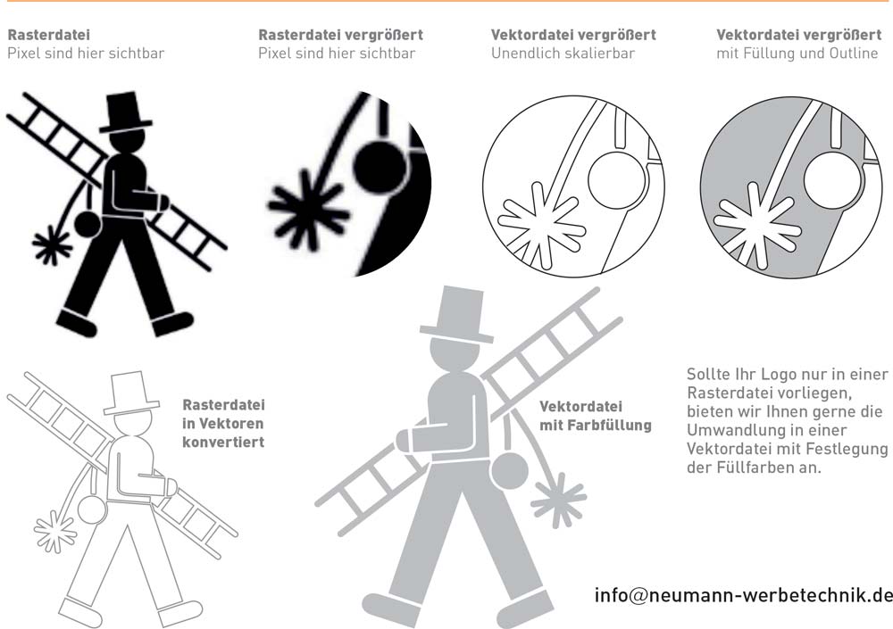 In der Werbetechnik werden sowohl Raster- als auch Vektorgrafiken verwendet, jedoch für unterschiedliche Anwedungsbereiche.