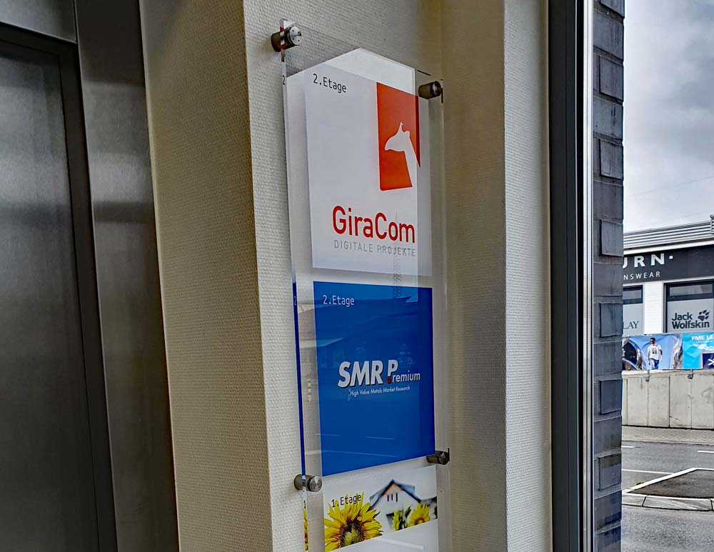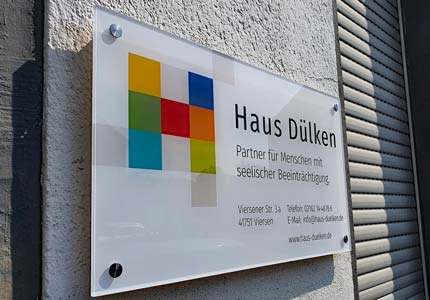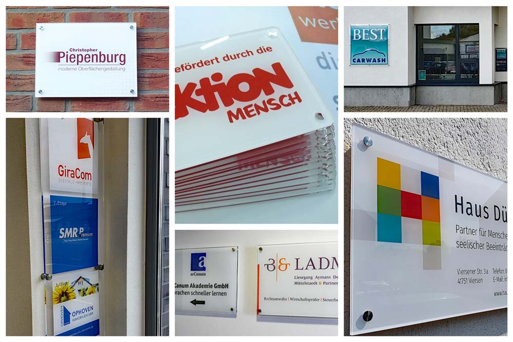 Unsere Acrylglasschilder, aus 4-10mm starkem, klarem Acrylglas, mit polierten Kanten, rückseitiger Beschriftung und weißer Hinterlegung. Für die Befestigung empfehlen wir unsere Abstandhalter aus Edelstahl.