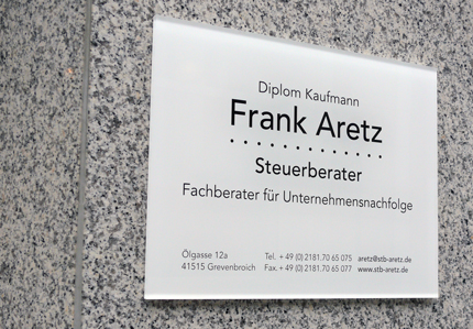 aus 8mm starkem, klarem Acrylglas, mit polierten Kanten und rückseitiger Beschriftung. Für die Befestigung empfehlen wir unsere Abstandhalter aus Edelstahl.