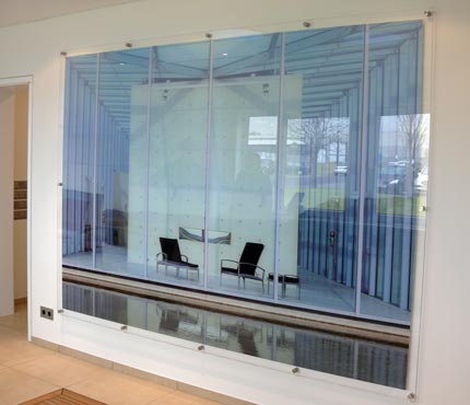 Acrylglasschild ca. 3000 x 2000mm, 10mm stark, mit rückseitigem, hochwertigem Digitaldruck und Edelstahlhalterungen.