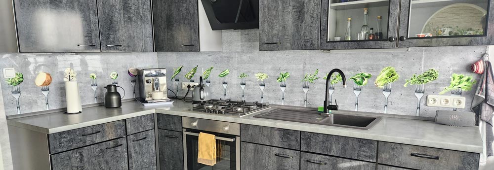 Entweder modern in Betonoptik mit farbigen Akzenten,