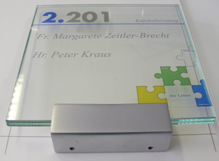 Erhältlich auch als Fahnenschild für Folieneinleger.