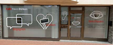 Die Sichtschutzfolie wurde an 3 Stellen von innen freigeschnitten, um den Kunden zu animieren, durchzuschauen.
