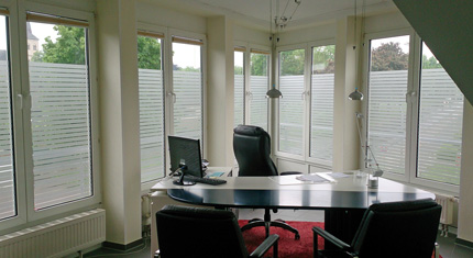 Streifen aus Glasdekorfolien als Sichtschutz nach Kundenwunsch.