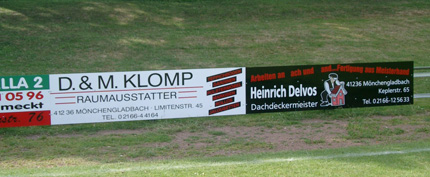 Banden für einen kleinen Verein, um Sponsorengelder zu erhalten. Standardbanden 3,00m / 2,50m x 0,75m zu Festpreisen.