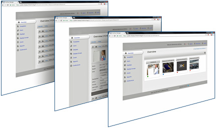 Die einfach zu bedienende Software kann unterschiedliche Inhalte auf den Bildschirmen anzeigen: Textpräsentationen, Bilder, Videos, Preislisten, RSS-Feeds, HTML, Stream, Flash, Animationen, Soziale Medien. Der Bildschirm kann in verschiedene Bereiche aufgeteilt werden. Hier können Präsentationen terminiert und angehalten werden. Sie können sogar für jeden Wochentag einzeln terminiert werden.