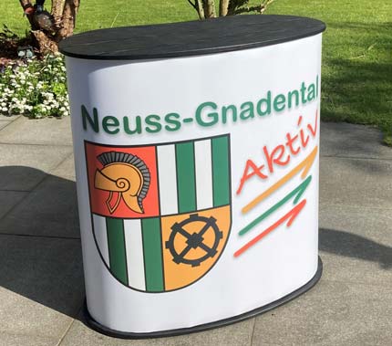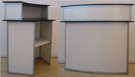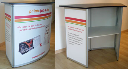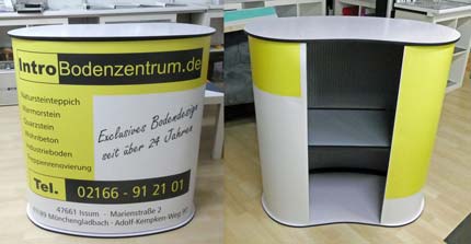 Mit den verschiedenen Theken wird das Programm der Faltwandsysteme sinnvoll erweitert. In Sekundenschnelle auf- und abbaubar, eignen sie sich ideal für den mobilen Einsatz und ermöglichen den schnellen und direkten Kontakt zum Kunden.