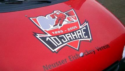 Diese mehrfarbig von uns übertragungsfertig erstellte Logo wurde vom Kunden selbst aufgeklebt.