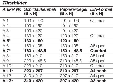 Standardmaße sind kurzfristig lieferbar