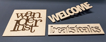 MDF, 3mm oder 6mm stark, kann gelasert und auf Wunsch lackiert werden.