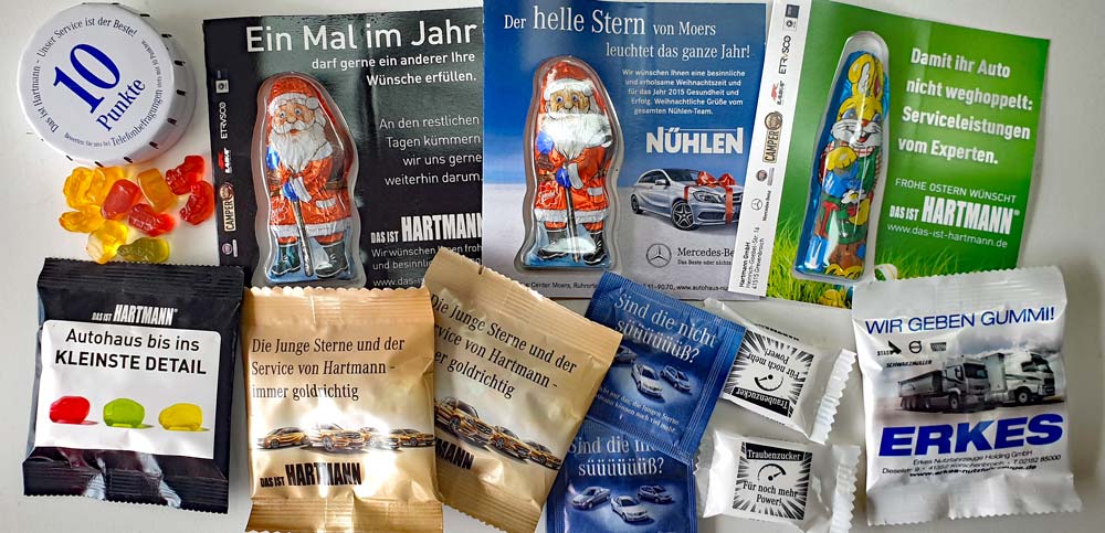 Leckere Werbeartikel zu Weihnachten und Ostern.