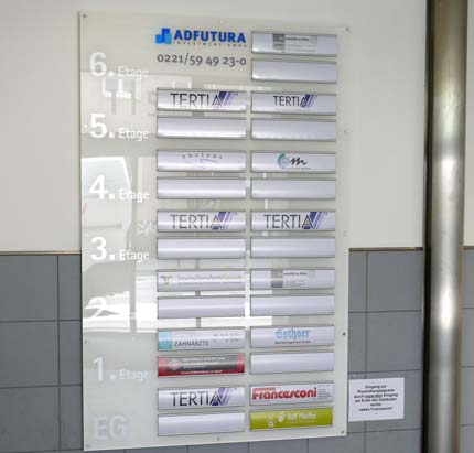Schilderanlage mit einzelnen Aluschilder für Einleger