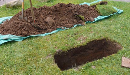 Aushub für Fundament nach Statikberechnung.