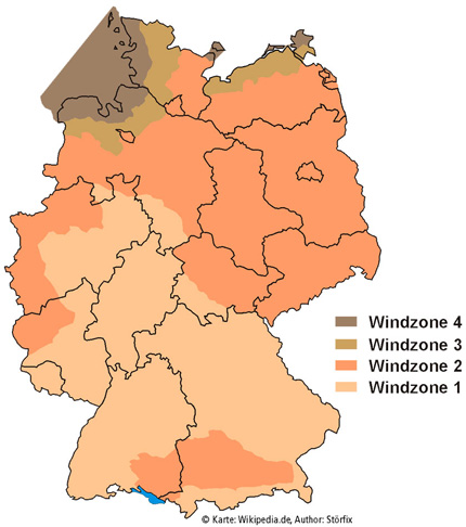 Diese Berechnung gilt für die Windlastzone 1 u. 2, andere Windlastzonen sind optional möglich.