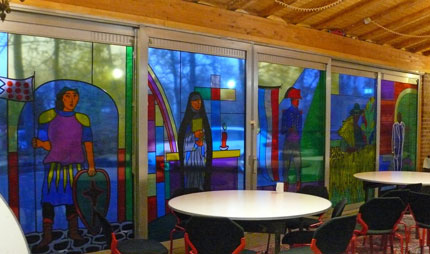 In Zusammenarbeit mit dem Künstler Dieter Patt beschrifteten wir 5 Fenster im Gut Gnadental in Neuss.